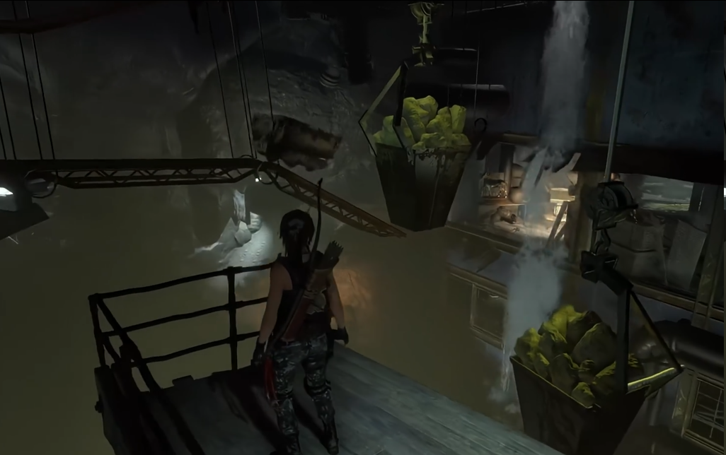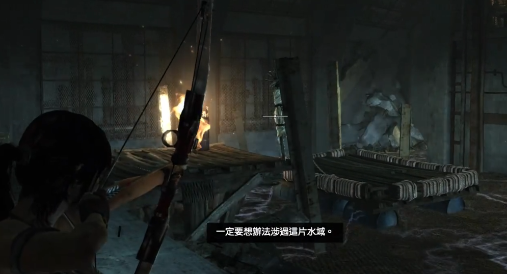 古墓丽影9水里有电那关的关键在于利用场景中的木筏和电灯机关来