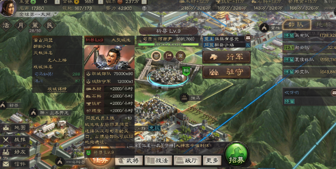 建造营帐需要消耗策书、木材、石料、铁矿等资源,其中一级营帐消耗5个策书。营帐的选址需要考虑战略价值,通常选择靠近资源区或关键战略位置的地块。建造完成后可以为部队提供2格视野范围,作为远离主城作战时的前哨站。营帐等级越高,能够调动的部队数量就越多,一级营帐最多可调动五支部队,通过升级可以提升这个数量。营帐建造不受土地等级限制,任何等级的土地都可以建造营帐。