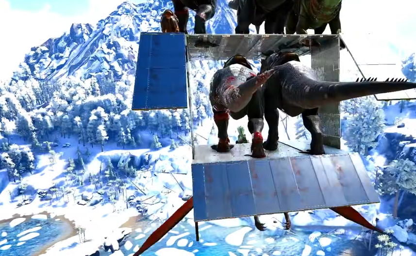 平台鞍作为风神翼龙的核心功能,解锁需达到97级,制作材料包含兽皮、水晶、水泥等基础资源。驯服后的风神翼龙可搭载建筑模块,形成空中移动堡垒,但负重与耐力管理至关重要。该生物无法游泳,水域活动会导致骑乘状态强制解除。其攻击方式以抓取中小型生物为主,战斗价值有限,主要定位为运输与建造平台。
