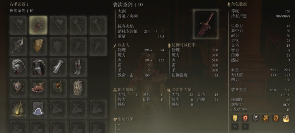 信仰流派以亵渎圣剑为核心武器,依赖高信仰属性触发战技与祷告效果。信仰建议提升至50搭配黄金树恢复祷告与火焰赐予我力量等增益技能。生命力与耐力需均衡分配,前者保证生存,后者支持持续战斗。护符选择群信徒的立誓布与火蝎护符,强化祷告威力与火属性伤害。该流派在应对群体敌人时表现优异,战技的吸血效果也能有效提升续航能力。