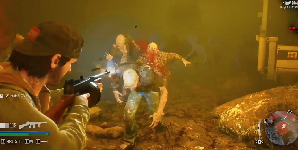 推荐使用汤普森冲锋枪(Chicago Chopper),这款武器杀伤力强且弹药充足,可在第五个营地购买。手榴弹、燃烧瓶等投掷物能有效消灭大量敌人,建议在提升营地信任度后从商人处购买。环境中的爆炸桶、油罐等物品也可以利用,引诱暴走潮经过这些地点能造成大量伤害。战斗前建议规划好逃跑路线,避免被包围,同时设置好陷阱和爆炸物。