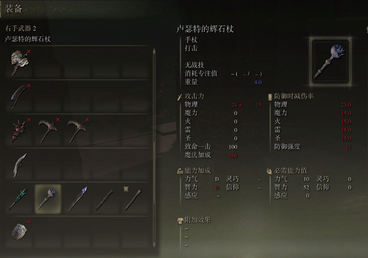 战斗时尽量保持距离,多用岩石球或辉石魔砾远程消耗。遇到突进型敌人可以卡地形或绕柱子,等骨灰拉住仇恨再输出。BOSS战前记得喝灵药提升魔法伤害,蓝瓶带4-5个确保续航。如果遇到魔法抗性高的敌人,可以切名刀月隐打近战,它的战技隙间月影伤害很高且带削韧。