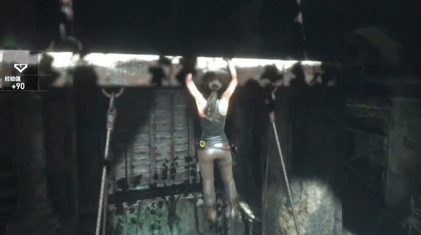 进入后会遇到更多变异人,解决掉他们后咱们来到水坑另一边,拉动开关将水位提高。站在木筏上,用绳索箭矢把木筏和前方水车转轴相连,木筏会被拉近水车,在靠近后跳上水车转轴所高台。再用绳索箭矢将右上方那个拉环和水车转轴相连,主要是为了引出两个变异人弓箭手,记得及时消灭他们。