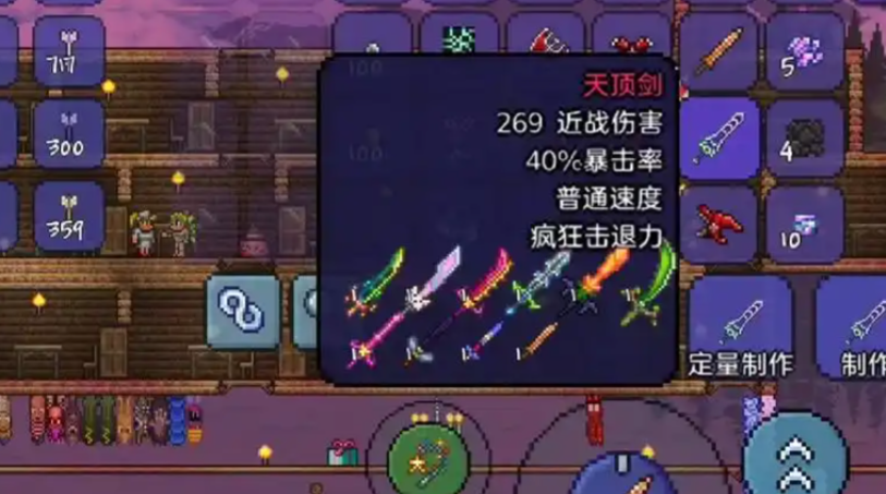 合成天顶剑需要一个复杂的材料清单,除了星怒之外,玩家还需要收集泰拉之刃、彩虹喵之刃、波涌之刃、附魔剑、狂星之怒、种子弯刀、无头骑士之剑以及养蜂人这八把武器。这些武器涵盖了玩家从游戏前期到击败最终BOSS月亮领主的不同阶段,收集过程本身就是一个漫长的挑战。狂星之怒和彩虹喵之刃均由月亮领主掉落,可以视作星怒的升级版。