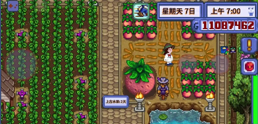 对于普通的、非巨大化的甜瓜,收获方法就简单直接得多。当甜瓜经历12天生长期完全成熟后,你可以使用镰刀进行收割。此时将光标移动到成熟的甜瓜上,会出现交互提示,点击即可完成采摘。及时收获成熟的甜瓜非常重要,这样可以腾出土地进行下一轮种植,避免浪费夏季宝贵的耕种时间。