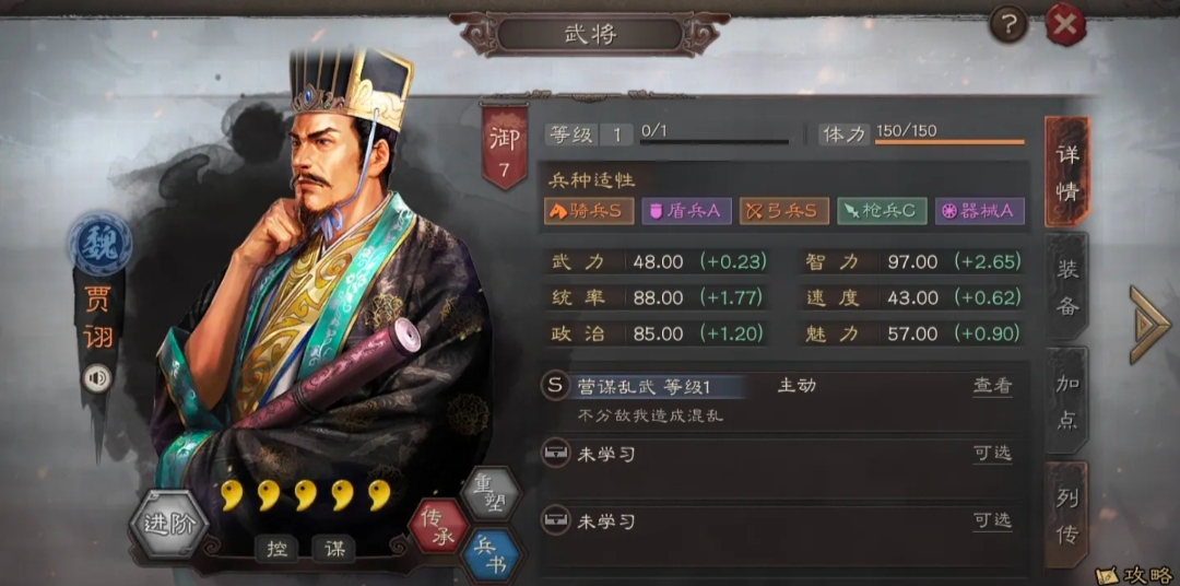 贾诩是游戏中混乱效果的代表性武将,其自带战法神机莫测能够对敌方群体施加混乱状态,并有概率使其攻击友军。该战法在准备回合即可生效,因此不受控制状态影响,稳定性较高。除贾诩外,貂蝉的自带战法闭月也有概率触发混乱,同时附带其他负面效果,进一步削弱敌方战斗力。需混乱效果对指挥类战法无效,因此在搭配阵容时需考虑敌方战法类型。