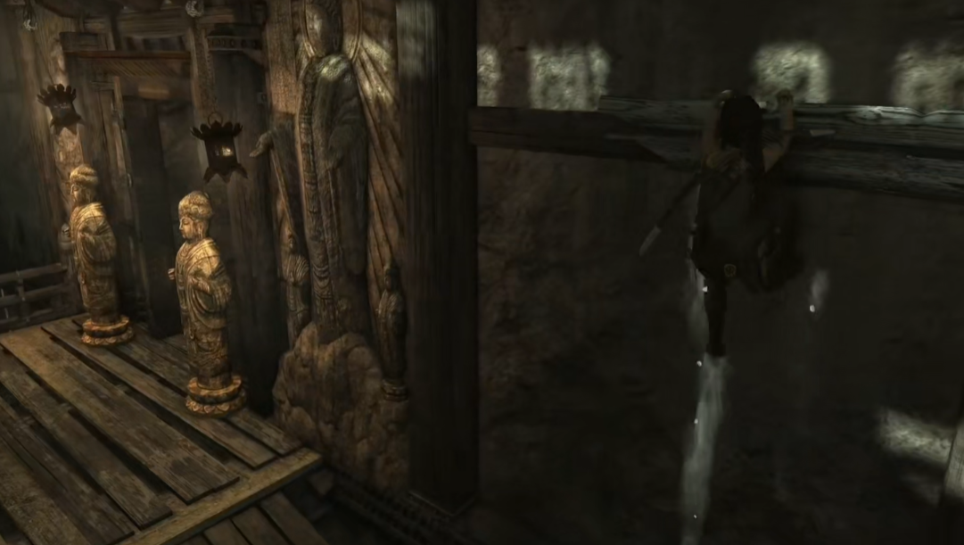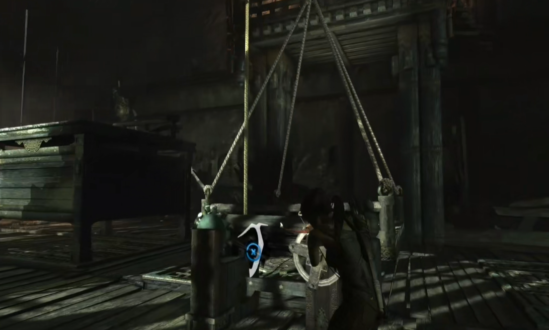 三个开关分别隐藏在大殿不同方位,每个都附带独立谜题。第一个开关需关闭风口并利用风力升降木板,当最下方风口开启时启动机关,借助强风跃至高台。第二个开关涉及光线反射机制,需调整镜面角度激活机关。第三个开关需要组合场景中的可移动部件,形成完整通路。解开所有开关后,金色大门开启,进入最终的古墓丽影核心谜题。