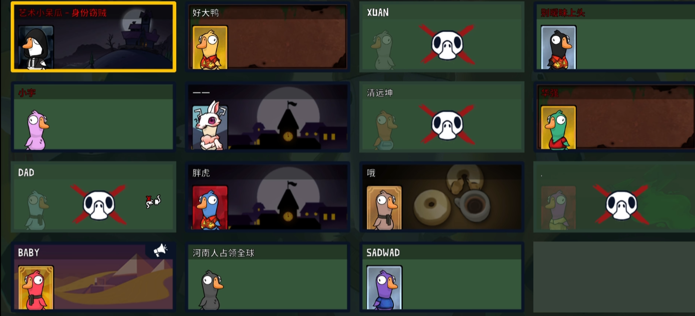 变形鸭和身份窃贼类似,但需要先对其他玩家按shift抽血,再按一次才能变成对方,而且变形有持续时间限制。玩变形鸭时刀完人要尽快脱离人群,找隐蔽地方等复原。变成其他鹅后要注意关闭麦克风,避免声音暴露身份。这个角色适合在狭窄区域行动,比如地下室的雾洞或隧道,利用地形快速完成击杀并隐藏。丧葬者是鸭子阵营中能拖尸的角色,咱们靠近尸体时会出现拖尸按钮,点击后可以缓慢移动尸体。隐藏尸体是关键,可以拖到地图边缘或角落,避免被其他玩家发现。拖尸时移动速度会降低,所以要注意周围环境,防止被目击。如果丧葬者亲自击杀目标,拖尸会有短暂冷却时间,需要合理规划行动路线。