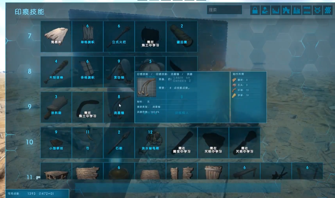 制作流星锤需要10个茅草、3块兽皮、15份纤维和3块石头,技能解锁后可直接在背包中制作。使用时需手持流星锤,双击屏幕右侧使其旋转,靠近目标后松开手指将其抛出。命中后目标会被短暂定身,玩家可趁机使用麻醉武器击晕并驯服。该道具对快速移动的生物尤为有效,例如无齿翼龙,可防止其逃脱。