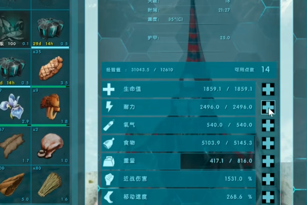 单人探险或驯服其他生物时,移动速度和耐力成为关键。建议将移动速度提升至150%便于追击目标或脱离危险区域。负重可适当削减至4000左右,耐力则需保证2500点以支持长时间悬停或追击。此类加点牺牲部分载重能力,但显著提升操作灵活性和生存率。