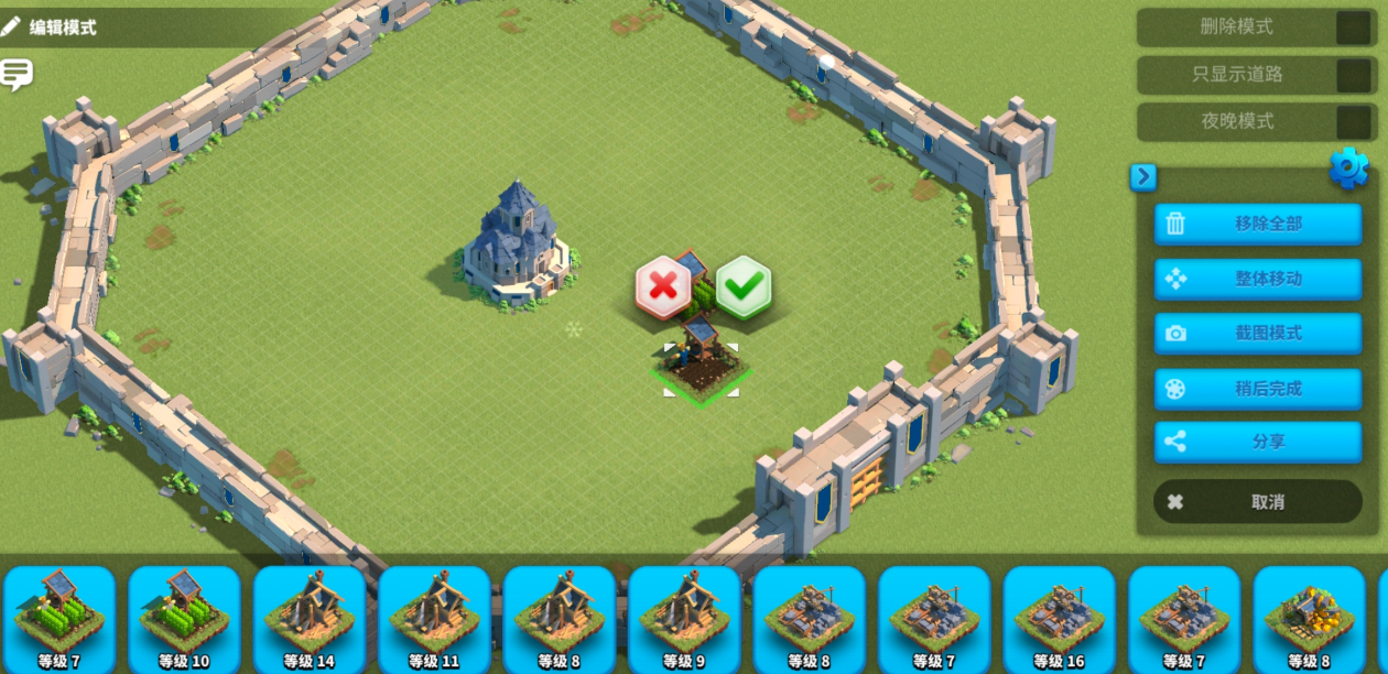 城市中心的布局很有讲究,合理摆放建筑能提升效率。生产类建筑比如农场、金矿可以集中放在一侧,方便统一管理。军事类建筑比如兵营、医院建议靠近中心位置,这样出兵和治疗会更快捷。装饰物虽然好看,但实用性不高,后期可以铲掉腾出空间。拖动建筑时按住不放就能调整位置,左下角的锤子图标是编辑模式入口。别忘了留出道路空间,虽然不影响功能,但看起来会更整齐哦。