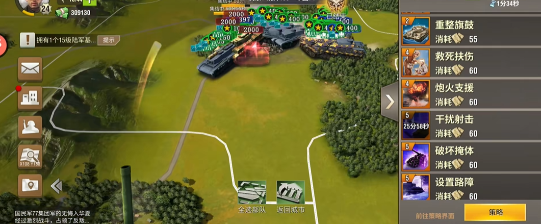 攻打18级城市需要合理规划兵力配置和战术执行。首先需要组建包含坦克、炮兵、步兵和防空单位的混合部队,坦克用于吸引火力,炮兵负责远程输出,步兵清理敌方防空设施,防空单位则保护己方部队免受空中威胁。部队数量建议保持攻城炮300-400单位,中型坦克200-300单位,并配备足够数量的轻坦作为机动力量。攻城前使用谣言策略削弱守军实力,战斗中保持部队分散部署,避免集中站位导致被范围伤害一网打尽。