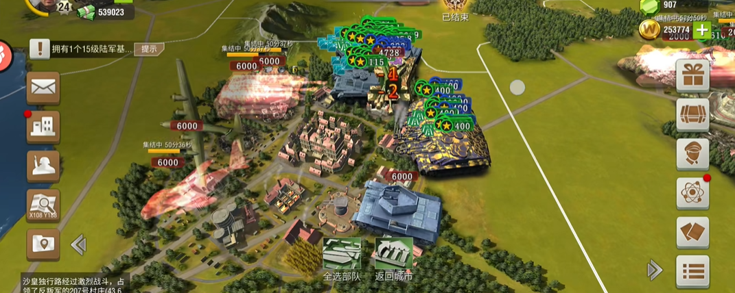 资源管理和科技升级是攻打高等级城市的基础保障。军事基地和兵工厂必须优先升级以解锁高级兵种,特别是火箭炮和自行火炮等后期关键单位。资源建筑如农场、铁矿、橡胶厂需要持续提升等级保证产量,战时可采用钢铁熔炉等策略临时提高资源获取效率。科技研发应侧重提升兵种攻击力和防御力属性,攻城武器相关科技能显著提高对建筑的破坏效率。