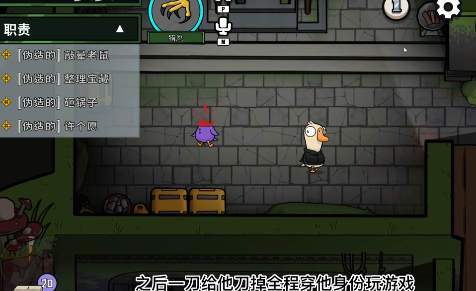 实战中,猎鹰需优先解决鸭子阵营玩家。由于鸭子知晓彼此身份且能通过破坏加速胜利,猎鹰应利用视野优势在迷雾或多人混战中发起攻击。中期可伪装成鹅阵营成员跟随大部队行动,避免单独行动引发怀疑。进入猎鹰倒计时阶段后,需利用地形掩护规避围攻,或通过快速连续攻击压制残存玩家。