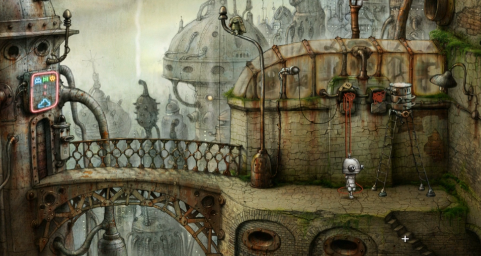 找回被小鸟叼走的拼图块需要特殊技巧。小鸟具有模仿特性,会跟随玩家动作。走到桥上时,通过反复拉长和缩短机器人身体,使小鸟在电线上晃动,最终导致电线断裂。小鸟掉落地面后,即可拾取缺失的拼图块。这一过程需注意操作节奏,过快或过慢都可能导致失败。拼图块找回后,将其放入拼图空缺处,整个拼图环节才算真正完成。