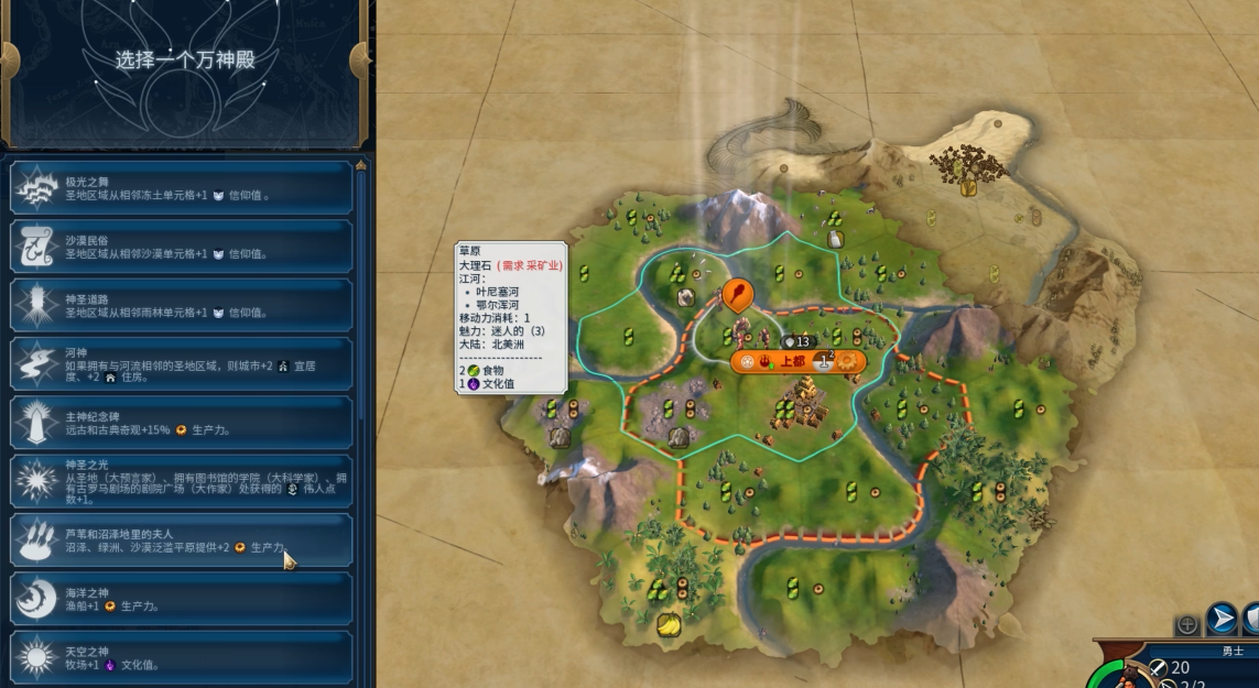 游戏界面信息量庞大,新手需逐步熟悉顶部状态栏的科技、文化进度及外交关系等关键数据。万神殿信仰达到25点时优先选择宗教移民加速扩张,若无则根据资源选择节庆女神(种植园多)或天空女神(牧场多)。科技研发应围绕胜利目标展开,例如科技胜利需优先推进学徒制。政策卡选择初期聚焦政治哲学,后期根据发展方向调整。区域规划需注意相邻加成,例如学院靠山、商业中心邻河等基础规则,工业区则需考虑资源分布。