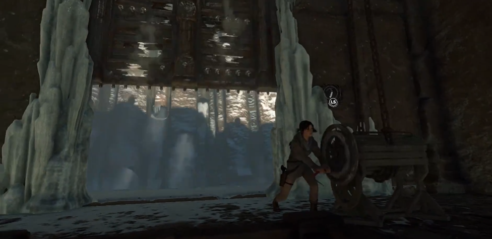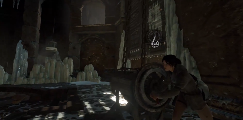 最后一段要利用滑索穿越峡谷,滑索尽头蜷曲的干尸旁箱子有信仰的象征胸针遗物。前进路线被冰壁挡住,需要攀爬进入新通道。注意右侧远处能看到蒙古人遗迹,但无法直接到达,必须按主线指引走。整个关卡结合了潜水、攀爬和机关解谜,保持耐心多观察环境就能顺利通过。