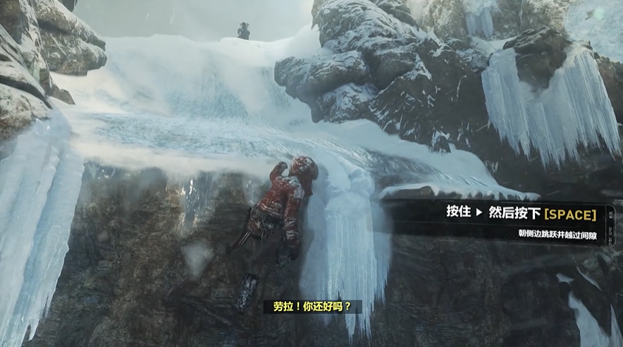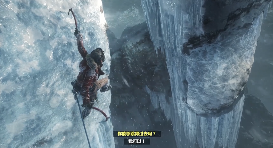 第一关的流程主要围绕雪山逃生展开,玩家需要掌握基础操作并完成一系列QTE事件。开局劳拉与同伴约拿在雪山行进时遭遇冰层坍塌,需根据屏幕提示按下E键用冰镐固定身体,随后按D键向右移动至断裂处,结合空格键实现侧跳。注意跳跃后需再次按E键抓取岩壁,失败会导致坠落。这段攀爬教学要求精准操作,冰层持续塌陷的设定增加了紧迫感。