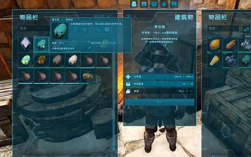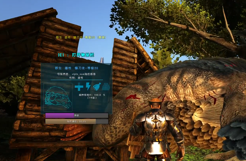 驯服后的镰刀龙可是个全能帮手,采集资源的速度快得惊人,无论是木头、茅草还是浆果,它都能轻松搞定。平时喂养它的时候,斑龙蛋饲料依然是首选,如果没有的话,各种蔬菜和浆果也能让它吃饱。镰刀龙的食量不小,得多备点食物,免得它饿肚子。如果它进入暴食状态,还可以用普通饲料加腐肉合成特殊饲料,这样能更快恢复体力和饱食度。
