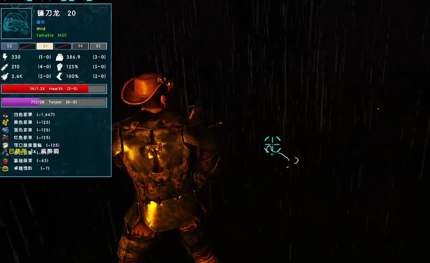 镰刀龙虽然是个素食主义者,但战斗力却一点都不含糊,那双大爪子连食肉恐龙都能轻松撕碎。驯服它的时候,最好找个高处或者自己搭个高台,这样能避免被它的爪子伤到。镰刀龙的眩晕值掉得特别快,所以一定要提前准备足够的麻醉药或者生物毒素,黑色浆果也能凑合着用,但效果没那么好。驯服过程中记得随时补充它的眩晕值,不然前功尽弃就太可惜了。