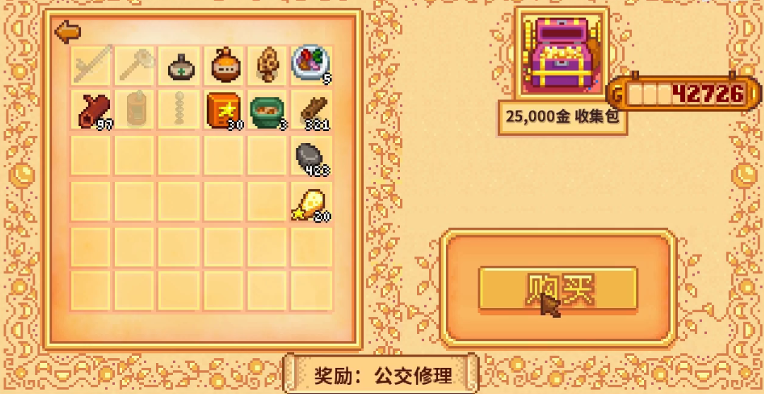 修理巴士是解锁沙漠区域的关键步骤。目前游戏内提供两种主要修理方式:一是通过Joja超市的付费服务,二是通过社区中心的捐赠任务。前者需要玩家购买Joja会员资格并支付修车费用,后者则需在社区中心金库完成总计45000金币的捐赠,分阶段解锁奖励设施后,夜间会有精灵自动修复巴士。两种方式均会永久解锁巴士功能,但选择社区中心路线能额外获得宝石复制器等实用物品。