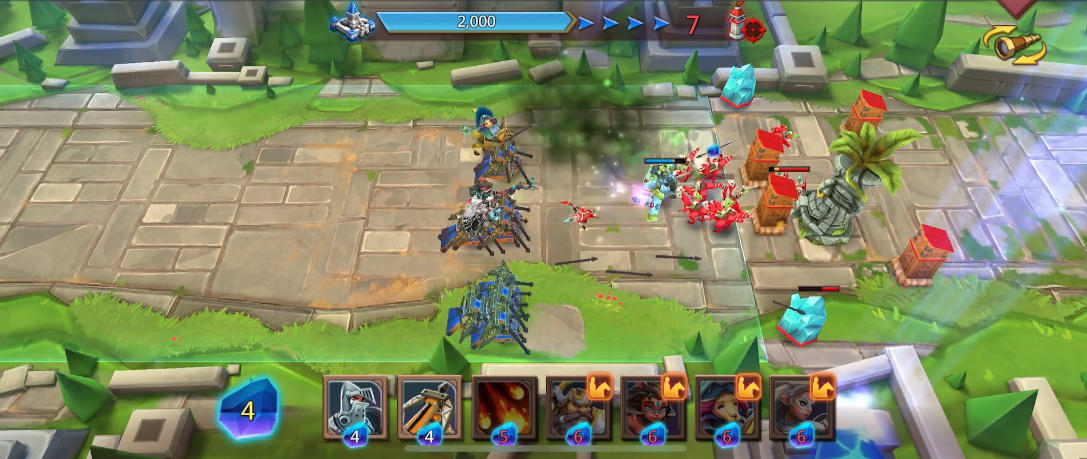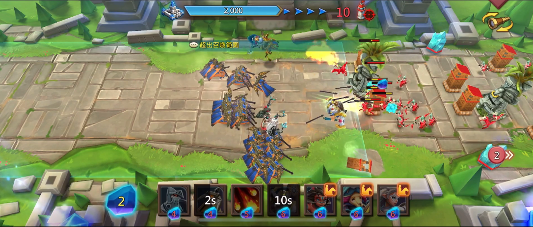 熔岩塔是本关最具威胁的防御设施,其火球攻击会造成持续伤害,并在战场留下熔岩区域阻碍行军。面对熔岩塔时,必须采用人海战术快速推进至塔下破坏它,其他迂回或远程消耗策略效果较差。队伍接近熔岩塔时需保持密集阵型,减少熔岩区域对行军路线的影响,同时优先让高防御角色承受火球伤害。破坏熔岩塔后,后续部队的推进压力会显著降低。