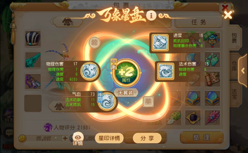 武器和头盔镶嵌太阳石最大化伤害,衣服推荐月亮石提升防御,腰带和鞋子用黑宝石抢速度优势。若走半肉路线,可将头盔宝石换成月亮石,但会牺牲部分输出。项链翡翠石的法防加成对脆皮月宫很有必要,毕竟活着才能持续输出。宝石等级尽量均衡提升,避免属性短板被对手针对。