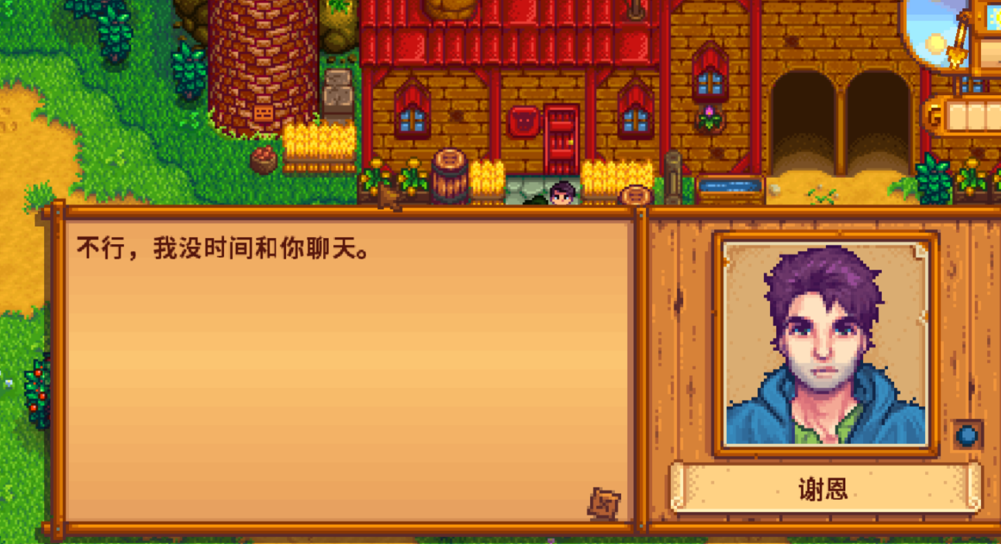 群体10心事件需与其他村民好感同步提升,具体触发条件涉及多人互动。跳崖剧情需好感达6心且雨天进入煤矿森林,谢恩会表达轻生念头并被送医,次日登门致谢。事件选项不影响结局,但能加深角色塑造。婚后谢恩会协助农场工作,但偶尔仍会提及饮酒习惯,对话中体现其性格转变。触发谢恩剧情需注意时间、天气和地点三要素,部分事件需前置条件。建议优先完成2心、6心和8心事件,以解锁关键剧情和农场功能。