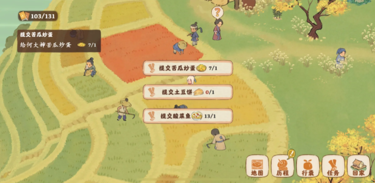 与大婶交互的核心机制涉及物品赠送和任务承接。她偏好接受农作物和家常菜肴,特别是萝卜、白菜等基础食材,以及红烧鸭、羊肉泡馍等烹饪成品。每次成功赠送可提升好感度,当好感度达到临界值时,会解锁新的对话选项和隐藏任务。需部分任务需要在大婶位于特定地点时才能触发,如集市触发交易任务,农田触发种植指导任务,住宅区触发家庭剧情任务。