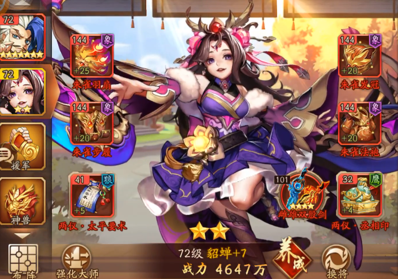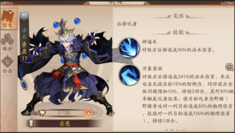 貂蝉和左慈在辅助控制领域占据优势。貂蝉的群体控制与治疗能力使其成为全能型辅助,而左慈的法术输出与护盾回血机制则兼顾输出与团队保护。这些武将的技能联动性较强,在阵容搭配时需要考虑彼此间的协同效应,例如左慈的伤害提升效果可显著增强主C武将的输出能力。