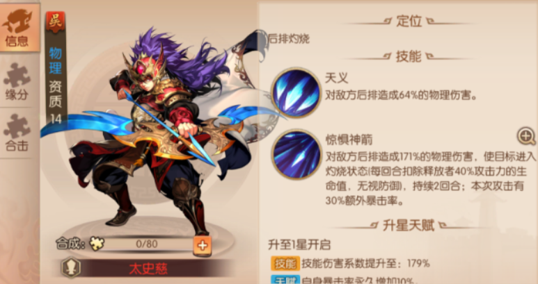 太史慈在这套阵容里扮演着重要的输出角色,他的技能不仅能对一列敌人造成高额伤害,还能清除敌方无敌状态。咱们在培养时要重点提升他的暴击率和攻击力,装备选择上优先考虑增加输出的套装。吕蒙则是控制型选手,他的大招可以消耗敌人怒气并降低防御,普攻也有不错的辅助效果。这两位武将和孙权搭配起来,能形成非常稳定的战斗节奏。