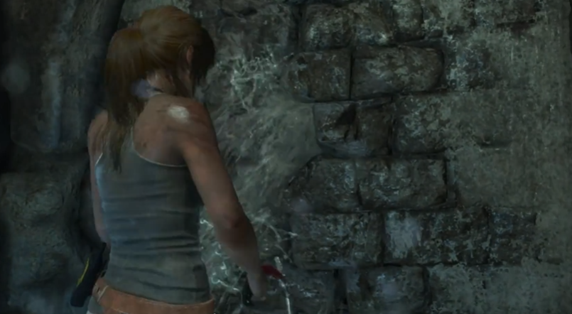 进入水池区域后,注意观察右侧的水墙,用枪械或弓箭打破它。水面上升后动作要快,趁着水位变化抓住墙体攀爬。如果慢了可能会被水流冲下去,需要重新开始。跳到对面后,别急着往前走,先找到墙上的水槽并破坏它,这样能进一步改变水位。