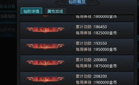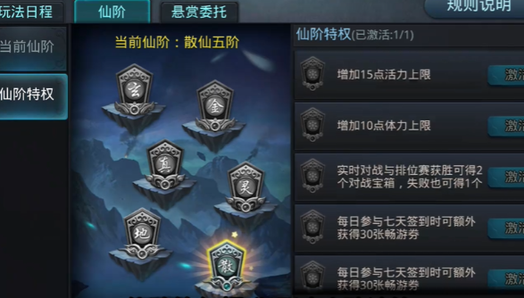 仙阶系统是咱们提升战力的重要玩法,通关第17章后就能解锁。解锁后通过匹配对战和实时对战获得功勋,每周一凌晨3点结算功勋并调整仙阶等级。仙阶分为散仙、地仙、灵仙、真仙、金仙、玄仙六个大阶,每个大阶又分十个小阶,仙阶越高每周领取的俸禄越丰厚。