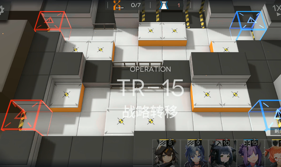 TR-15这关会教你一个叫战略转移的核心操作。这一关系统给了你六名固定的干员,分别是翎羽、芬、杰西卡、芙蓉、米格鲁和阿米娅,你得用他们来过关。这关的核心理念就是别把干员当成一次性的,要敢于在合适的时间点把快扛不住或者打完关键任务的干员撤退下来,这样能回收你投入的部署费用,让你有更充裕的费用去部署其他干员,实现场上资源的最大化利用,这也是撤退回收费用机制在实战中的第一次重要应用。