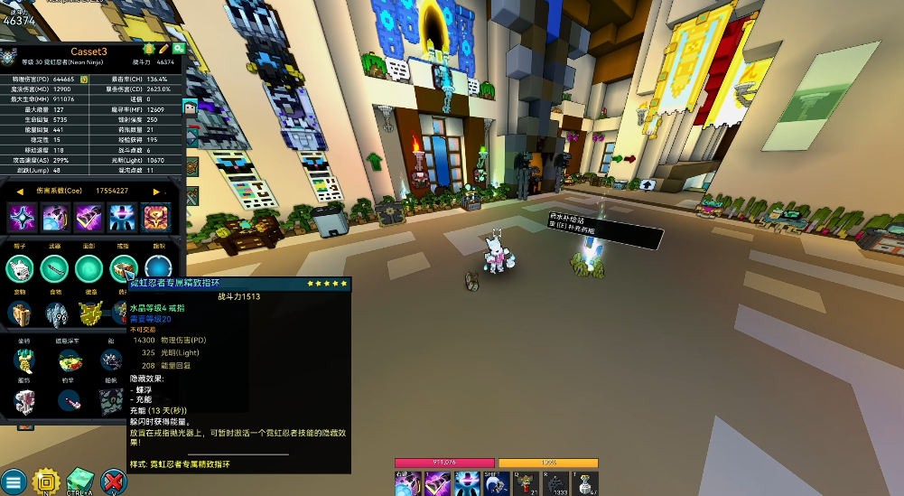 宝石选择需要围绕暴击率、物理攻击和移动速度展开,职业宝石能提升飞镖伤害和范围,是伤害来源的核心,宇宙大宝石选择吸血鬼征服者提供吸血和移速加成,纵火碟则增强移动速度和范围清怪能力,这些属性能让忍者在潜行状态下机动性更强,配合技能实现高效穿梭战场。