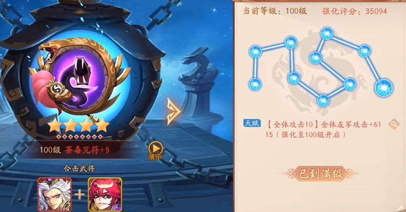 兵符的养成主要围绕着升星和强化两个维度展开。升星需要消耗对应的兵符碎片,每次升星都会显著提升兵符的攻击、生命、防御属性,并且会增强其合击技能的效果,例如提高伤害百分比或控制概率。强化则需要消耗兵符精华等材料,每强化一级都能小幅提升某项属性,每达到10级这样的关键节点,还能激活一个强力的强化天赋,带来可观的额外加成。兵符的星级是永久保留的,即使你后期回收了兵符,其强化等级会归零并返还材料,但升星带来的属性提升和技能增强效果会一直存在。