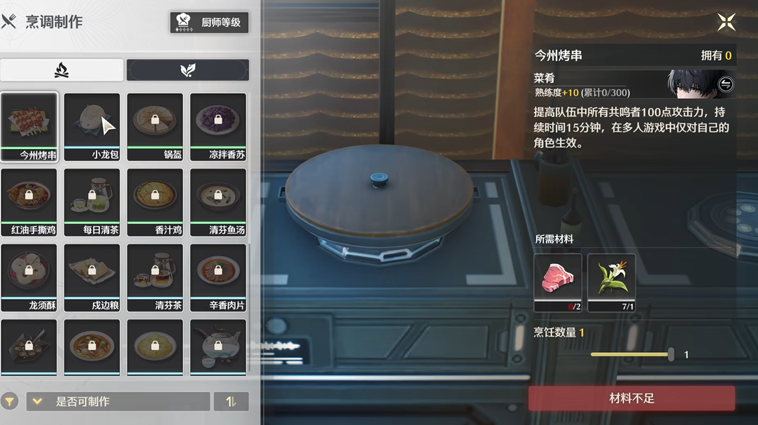 烹饪功能主要集中在今州城界的攀花饭馆,那里设有一个固定的烹饪台。玩家到达后可以直接互动使用,开始制作各种食物。这个烹饪台不仅是制作菜肴的地方,还是提升厨师等级的必经之路。通过不断烹饪,你可以从一星烹调学徒逐步升级到四星厨师长,每升一级都会自动解锁新的食谱,比如初始的红油手撕鸡和每日清茶,以及后续的香汁鸡、辛香肉片等更丰富的菜品。