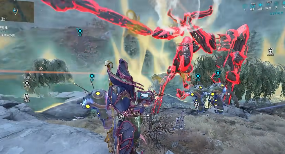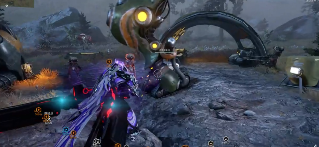 整个战斗主要分破盾和拆关节两个大阶段,只有指挥官的增幅器攻击才能打掉BOSS身上那层紫色的护盾,等盾没了,再用战甲手上的高伤害武器,比如狙击枪,去砰砰打掉它身上发光的黄色关节。整个过程就像在和时间赛跑,因为平原的夜晚就那么五十来分钟,你得规划好每一步,从提前拉好叫做夜灵诱饵的气球,到破盾、拆关节、最后用充能的气球完成捕获,都得自己一手包办。