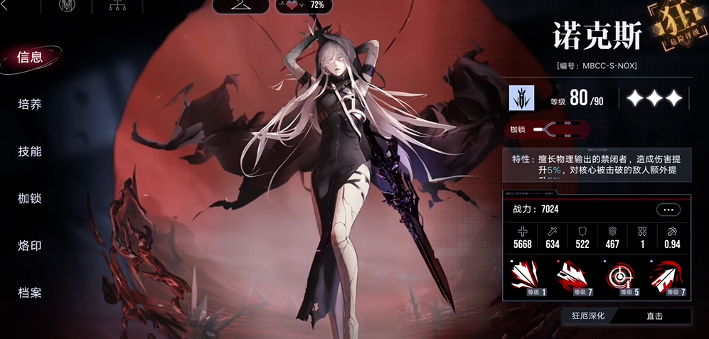 由于她的常规破核与必杀技绑定,所以快速启动是关键,拥有至少一枷锁可以显著改善她的能量回转,让大招开得更快。常见的做法是等诺克斯能量满后,将她移动到战线中央或敌人密集的区域开启大招,之后她的每一次范围普攻都能对九宫格内有核心的敌人进行破核。她的专属烙印技能则适合用来处理拥有多个核心的精英敌人或首领,看准时机使用可以瞬间造成大量核心伤害。在战斗中要注意将她放置在能够覆盖更多敌人的位置,以最大化其范围破核的收益。