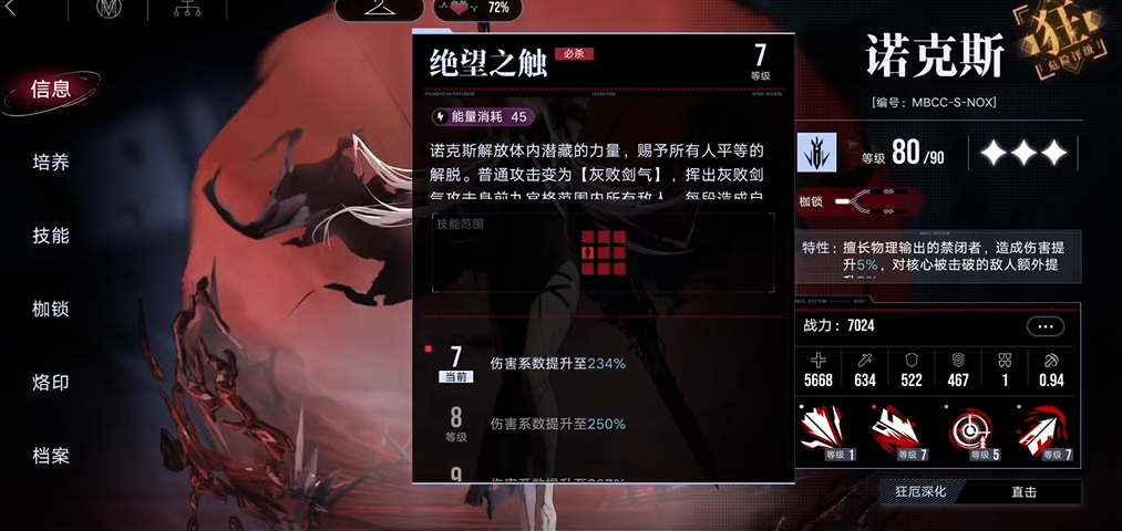 培养诺克斯时,技能加点和烙印选择都影响着她的破核与输出效率。技能升级的优先顺序通常是先升满必杀技,以增加变身后范围攻击的伤害,然后是普攻,再是被动技能。烙印方面,经典的选择是新城·梦想套装,它能直接提升诺克斯的普攻伤害,让她在开启大招期间的范围破核攻击更疼。其他如潘多拉+预知梦、忘却深处+奇点或重逢之日等组合也是可选的方案,可以根据关卡需求调整。重构系统开放后,建议至少解锁12个锚点以获得关键增益,节点优先选择提升普攻伤害和攻击力的,专属必杀节点非常有用应当开启。
