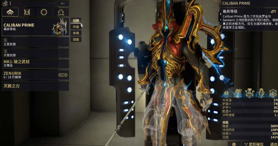 完成新纪之战系列任务后,会解锁与之相关的新战甲Caliban。这款战甲融合了生物与Sentient的特性,其被动技能适应装甲能让范围内的队友获得伤害抗性,主动技能则兼顾了旋涡位移、范围控场、召唤援军和削减护甲的功能,是一位功能全面的控场兼辅助型战甲,其蓝图可通过后续解锁的合一众赏金任务获取。