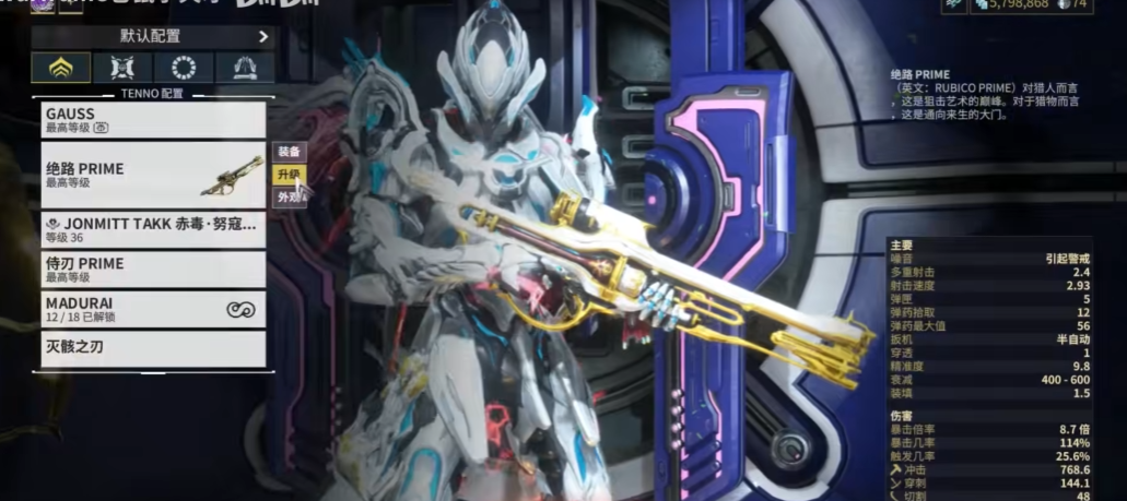 绝路Prime是绝路狙击枪的Prime版本,这是一把在玩家社群中备受推崇的高性能狙击武器,尤其以在对抗夜灵平原的大型头目战中的卓越表现而闻名。作为Prime武器,它在基础属性上相比普通版本获得了全面增强,包括更高的伤害、暴击几率、触发几率、射速以及装填速度,其设计初衷便是为了应对游戏中期乃至后期的高强度战斗场景,被许多玩家视为狙击枪领域的标杆之一。这把武器的核心定位在于对高价值单体目标进行致命打击,其效能发挥与玩家的配卡思路和战甲技能搭配紧密相关。