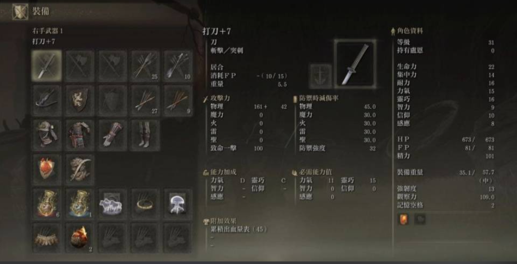 纯敏捷流是剑士的主流方向。你得优先把血量点上去,建议前期将生命力加到20-30点,以确保基础的生存能力,避免被精英怪或BOSS轻易秒杀。其次需要关注耐力,它直接影响你的精力和负重,足够的精力才能支持连续的翻滚和攻击,而控制负重在中负荷以下则是保持灵活翻滚的关键。核心输出属性灵巧建议逐步提升至40或50的软上限,以最大化弯刀、打刀等敏捷补正武器的伤害。力量属性只需满足武器的最低需求即可,避免过度分散点数,保持build的纯粹性。