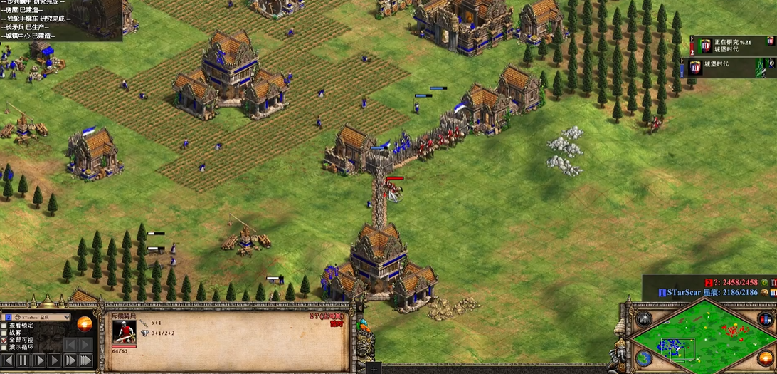 开局阶段必须快速且高效地采集资源,确保经济上取得领先。你需要迅速派侦察单位探明乃蛮人基地的位置和兵力构成,同时家里抓紧训练农民,优先保证食物和木材的稳定供应,为快速升级时代打下坚实基础。要尽早控制地图上的关键资源点,特别是黄金矿区和石矿,因为乃蛮人的经济系统相对脆弱,切断其资源收入能极大限制其兵力补充和科技发展。在升级到城堡时代后,应优先建造射箭场、马厩等军事建筑,开始训练针对性的作战单位。
