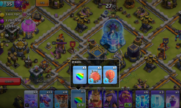 常规外置或半外置城堡的探援流程简洁高效,优先选择野蛮人、弓箭手、哥布林这类占用空间小、造价低廉的单位,在城堡触发圈边缘单点投放,让单位缓慢靠近触发区域,一旦进入范围援军就会全部出动。这类单位移动速度与攻击节奏适中,能稳定吸引援军仇恨,同时不会快速被防御建筑消灭,确保援军被引导至远离核心防御的空旷地带。观察援军走出城堡后,可短暂停留确认composition,区分地面与空中单位、普通兵种与英雄宠物,判断是否存在超级部队、英雄猎手、飞龙等对主力威胁较大的单位,完整掌握信息后再规划清理手段。