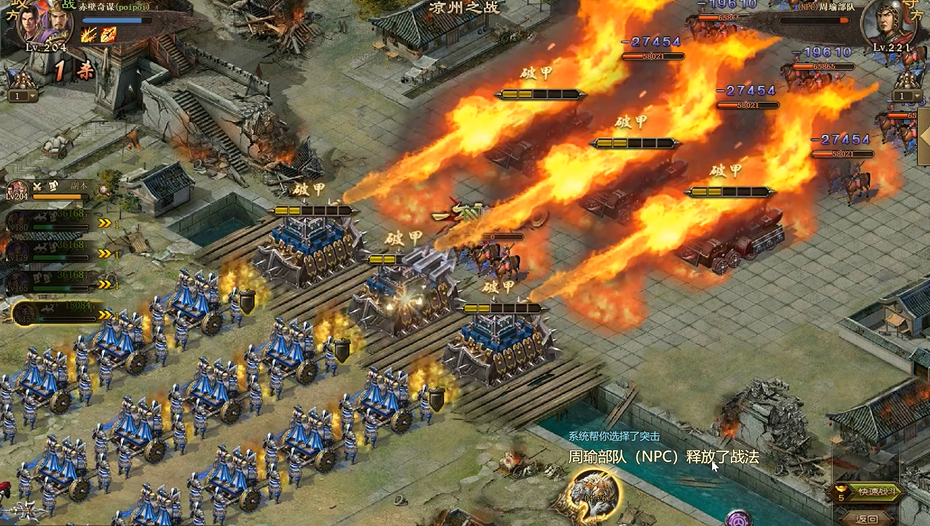 孟获登场后配合副将诸葛亮共同承接第四NPC战法,利用连撞与普攻快速输出,将第四NPC压至最后一排残血,由副将曹仁完成补刀压制,这一阶段要保证孟获至少保留两排兵力,为后续应对法正本体铺垫。最后出场的貂蝉穿戴极驱虎套装,先手动清理第四NPC残兵,随即切换自动模式,吸引法正主动释放战法,借助魅惑机制让法正自身承受高额伤害,配合貂蝉剩余兵力完成收割,整个流程无需强行拼爆发,依靠承伤顺序与技能机制即可稳过。