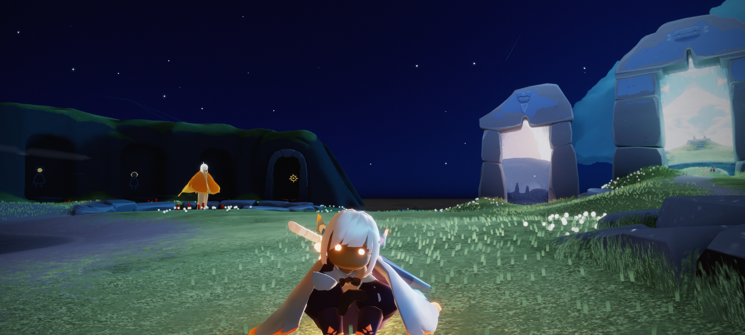 这套搭配在不同场景中都有出色的表现,在霞谷的冰雪场景中,白金斗篷的光泽与冰雪环境完美融合,平菇发型的简洁设计在冷色调背景中更显突出。在禁阁、暮土等偏暗场景中,浅色系的搭配能提升角色辨识度,让玩家在人群中快速找到彼此。日常跑图时,简洁的搭配不会影响动作施展,斗篷的流苏摆动与角色飞行、奔跑的动态结合,兼具美观与实用性。搭配时需注意控制整体色彩数量,以白、金、黑三色为主,避免加入过多高饱和度色彩,确保视觉效果干净和谐。