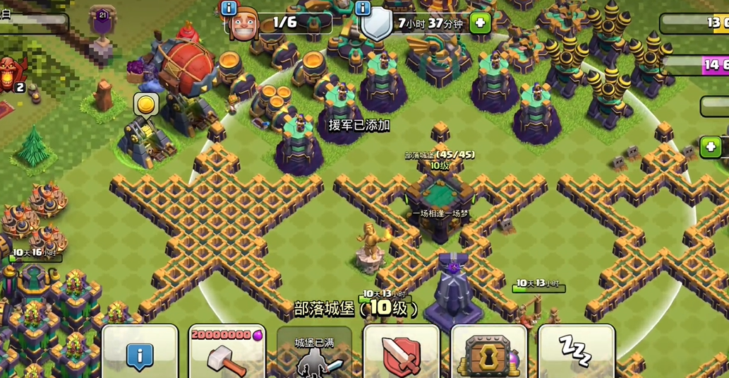 解锁末日家园需满足大本营等级达到15级,且主基地船坞建筑完成全部升级,同时通关主世界对应的特殊挑战关卡,解锁后传送门会持续显示在主界面左侧,点击即可切换场景。末日家园的核心建筑为末日中枢,该建筑决定家园整体等级上限,升级需消耗主基地的金币、圣水与暗黑重油,同时需要专属的末日碎片,碎片可通过家园内的资源采集器、防御战胜利、每日任务获取。家园内布局分为资源区、防御区、兵种工坊三大板块,资源区新增末日金矿、深渊圣水罐两种专属采集建筑,产出效率高于主基地同等级建筑,且不受敌方常规进攻掠夺;防御区可搭建锈蚀城墙、电磁塔、深渊加农炮等专属防御设施,防御机制侧重群体伤害与持续控制,克制大规模地面兵种推进;兵种工坊可解锁末日猎犬、暗影法师、锈蚀巨人等专属兵种,这类兵种无法在主基地使用,但在末日家园攻防战中具备专属属性加成。