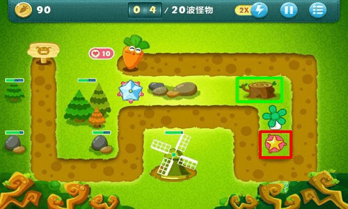 开局优先在地图中段核心点位布置满级太阳花炮塔,借助大范围灼烧伤害同步清理沿途仙人掌与遮挡道具,开局自带的雪花减速塔紧贴怪物必经弯道摆放,持续降低怪物移动速度,让太阳花稳定打出全额伤害,全程不要建造超过三座便便塔,完美契合水晶萝卜隐藏限制条件,前期积攒金币不盲目铺满炮塔,优先清空高价值障碍物,解锁隐藏炮塔点位与大量金币收益,快速完善基础防御阵型。