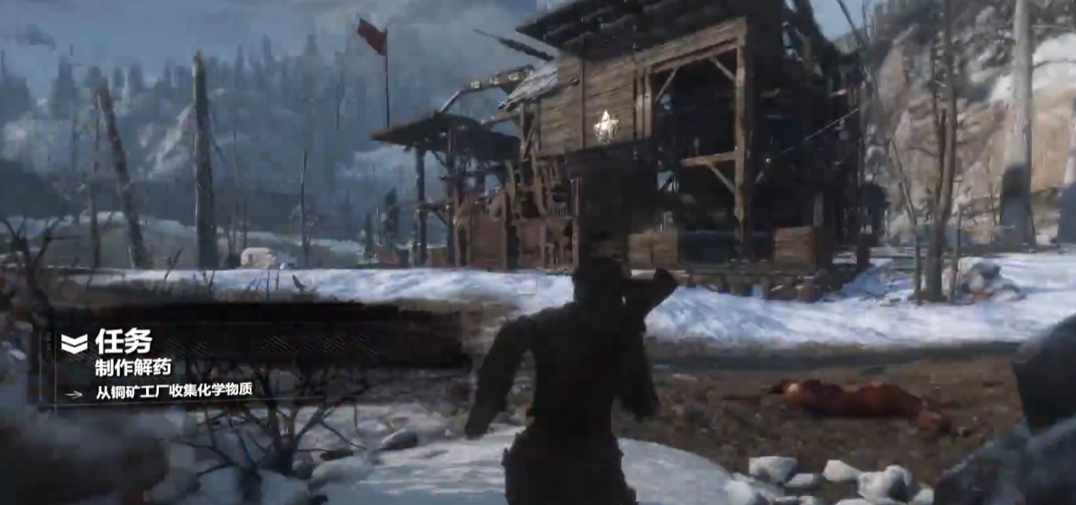 收集完材料后,返回铜矿工厂的空地,在东南方的大门附近找到列车车厢,爬上黄色梯子到屋顶,进入建筑物内就能找到制作解药的关键物品硫化二苯胺。合成解药后,记得快速传送到邪恶溪谷营地,因为接下来会有一场硬仗。解药生效后,场景会恢复正常,但敌人也会增多,建议优先解决高处的狙击手,再用潜行或散弹枪清理杂兵。
